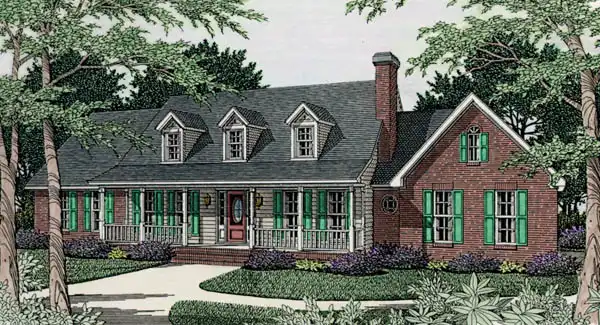Exceptional styling for the exterior of this traditional design accompanied by an exciting interior. A cathedral ceiling covers the great room, kitchen and dining room. Tucked away near the kitchen is a desk for easy access but hidden from sight. The master suite has a private porch accessed from french doors.