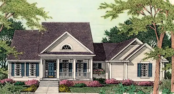 The dining room features a vaulted ceiling with a lighting ledge. The large angled bar in the kitchen welcomes the living room and breakfast into an open family area. A private master suite showcases a vaulted ceiling, ventless fireplace, and a built-in television cabinet. The basement option increases the heated square footage to 1874.
