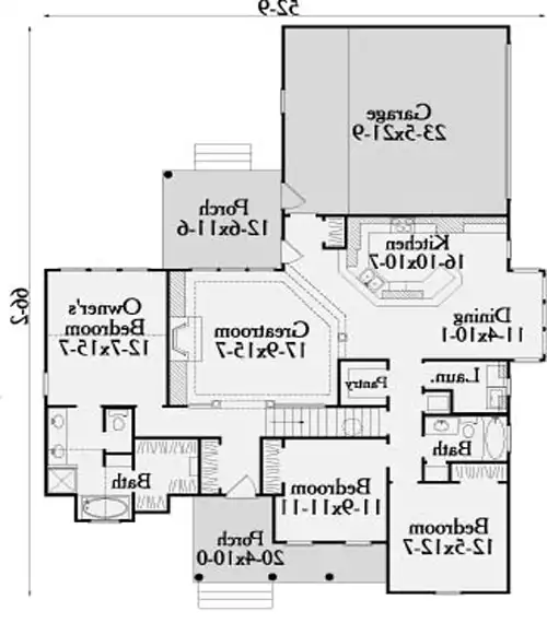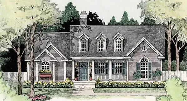 Multi-gabled exterior topped with triple dormers lends a cottage flair to this traditional home. The angled bar joins the living area to the kitchen. All the necessities are included in the kitchen along with a desk, and a walk-in pantry. Future expansion upstairs provides 563 square feet of additional living area.