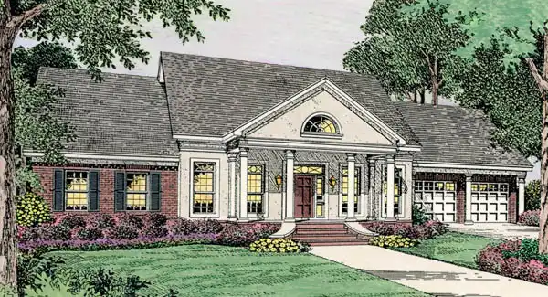 This home offers a family dining area with the sitting and breakfast rooms combined. A desk and walk-in pantry enhance the large kitchen. Vaulted ceiling, fireplace and built-in cabinets are provided in the greatroom. Architectural columns offer guidelines for the dining room from the foyer. Optional expansion can add up to an additional 1132 square feet upstairs.