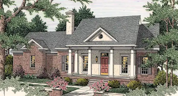 Great use of space in this design. The bedrooms are spacious and offer walk-in closets. In the master suite private access to the rear porch is available. The great room has built-ins surrounding the fireplace and the kitchen presents an island snack bar for additional storage, food preparation and seating.