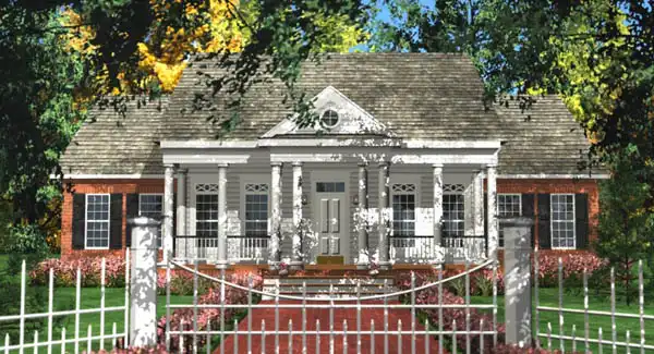This unique design allows each bedroom privacy. The kitchen is open to the great room with a fantastic bar accented with columns. Casual and formal spaces are offered in this design with built-ins throughout. The upper floor has an additional 987 square feet for expansion or attic storage.