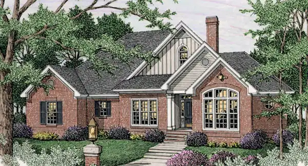 This design is full of surprises including a vaulted ceiling which flows through the kitchen and breakfast area. Additional natural light pours over the breakfast area from a rear gable complete with a charming circle window. Attractive architectural columns define the foyer, great room and formal dining room.