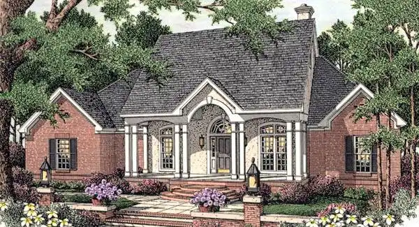 An elegant faade enhanced by the beautiful arched entrance. The layout inside provides formal and casual spaces. In the master suite a separate study is included for convenience. More amenities include a large walk-in pantry and desk area in the kitchen, sizeable laundry room, dual vanities in the hall bath and interior columns.