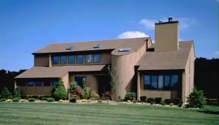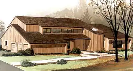 The dramatic semi-circular stair silo is the distiguishing exterior feature of this exciting contemporary home. The design boasts a vaulted sunken living room which shares a see-through fireplace with an expansive family room. The large U-shaped kitchen lies adjacent to a sunny breakfast area with sliding glass doors to the backyard. Upstairs, there are four bedrooms off a dramatic floating balcony and a sensational master suite.
