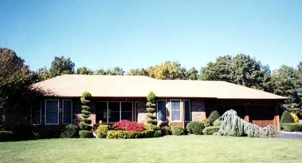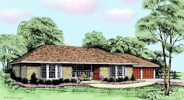 I designed a pair of bay windows to provide the front of this simple one-story ranch home some curb appeal. Its cozy design makes it ideal as either a starter or retirement home. Sliding glass doors in the living/dining area lead out to an optional rear deck. A tray ceiling tops this living area, lending it a further sense of space. The L-shaped kitchen includes a bayed area perfect for casual meals. Themaster suite is private and includes alargre walk-in closet.