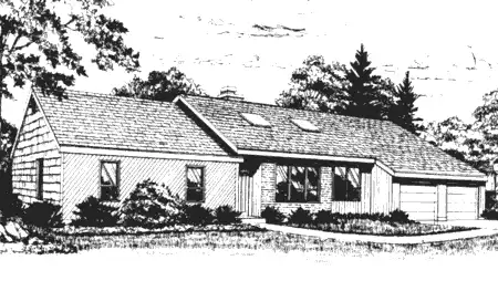 Diagonal and vertical cedar siding, wood shingles and brick veneer add definition to this appealing one-story home. Although a modest 1615 sq ft, I designed it to feelsand live larger. The living and dining rooms flow together beneath a 16-ft.-high cathedral ceiling. Skylights and picture windows brighten the area, which is warmed by an optional three-way fireplace that is shared with the family room. A convenient island separates the kitchen from the breakfast room, which boasts a 15-ft. ceiling. Construction blueprints include slab and basement/crawl space versions.