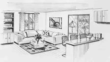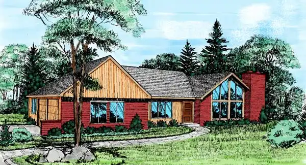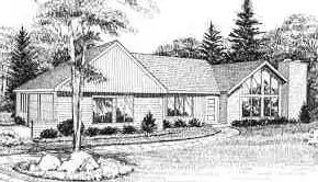 This contemporary ranch offers three generous-sized bedrooms and abundant living space in just over 1,500 square feet. It is a true center hall plan with very defined circulation, that orients to a rear yard that is viewed or accessed from four major areas. The front facing large living room boasts a massive corner fireplaceand a vaulted ceiling puntuated by a dramatic front wall of windows. Adjoining the kitchen, the family room provides an open atmosphere. Two full baths and a centrally located laundry service the three bedrooms.