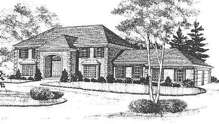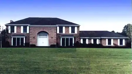 This formal brick facade is expanded by a large one story wing that house a guest room, greenhouse and garage. An enormous living room/family room arrangement accommodates every family's needs. The roomy breakfast area adjoins the kitchen, which overlooks a rear greenhouse or porch.