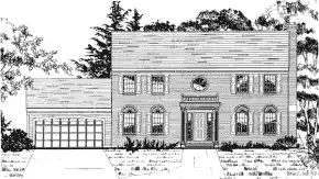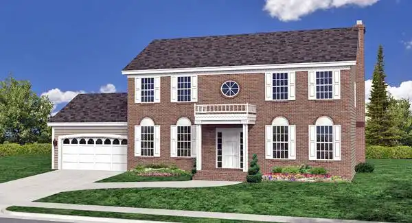 This economically designed two-story offers a traditional exterior with updated interior features. The oversized central foyer separates the two formal living spaces at the front of the home. The foyer's vaulted ceiling is accented with a lovely oval window, while the living room and dining room are dressed up with arched windows.