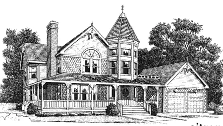 The design elements of this modest Victorian are classic; the attached garage let's us know that it is an up-to-date home. The turreted element serves as the first floor entry and a sitting area off the master bedroom on the second floor. The first floor provides a spacious kitchen and rear family room plus a beautiful, bayed dining room and grand living room.