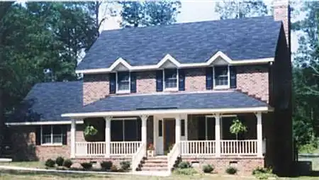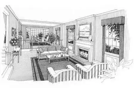 A large fireplace warms the spacious, sunken living room of this home. A railing separates the living room from the dining room, up two steps. Sliding glass doors set in a bay window access a terrace. The U-shaped kitchen and the dinette flow together to create an informal space that is sure to become the heart of family life. The big family room has a built-in entertainment center.