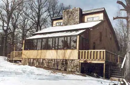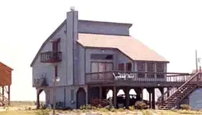 This home is perfect for a beach property, or any other lot with a fantastic view. The spacious great room boasts a fireplace and a dramatic vaulted ceiling. Upstairs, the master bedroom enjoys a private balcony, a sitting room, and a full bath, plus optional openings to the great room below. The showpiece of this home is the wraparound deck, which surrounds an optional solar room, providing natural light and heat to the main floor. There is alarge laundry, utility and storage space adjacent the kitchen.