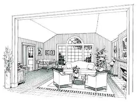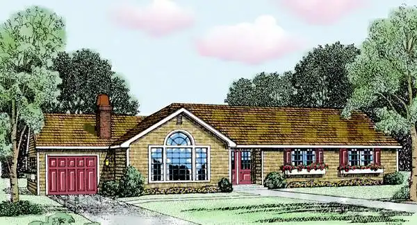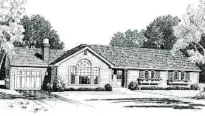 This home's glorious great room features a vaulted ceiling, a traditional fireplace, and a dramatic front window wall. The modern kitchen enjoys close access to the dining room and a snack bar serving the sunny dinette. The master bedroom features two closets and a private bath. Two additional bedrooms share the full hall bath, which enjoys a dual-sink vanity.