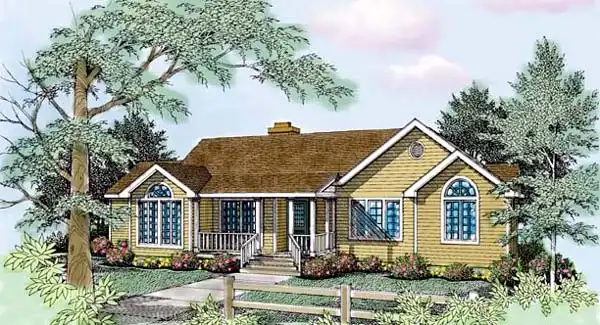 This delightfully charming country style ranch boasts both an exterior and interior that sparkle. A broad front porch opens into a very dramatic interior. The design features a true grand room large enough to accommodate both formal and separate informal furnishing arrangements. There is a formal dining room and a fully separated, front-facing eat-in kitchen; note the convenient side door from the setback garage.