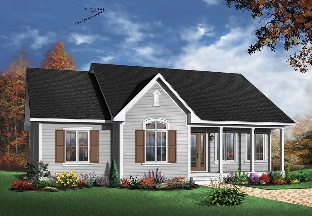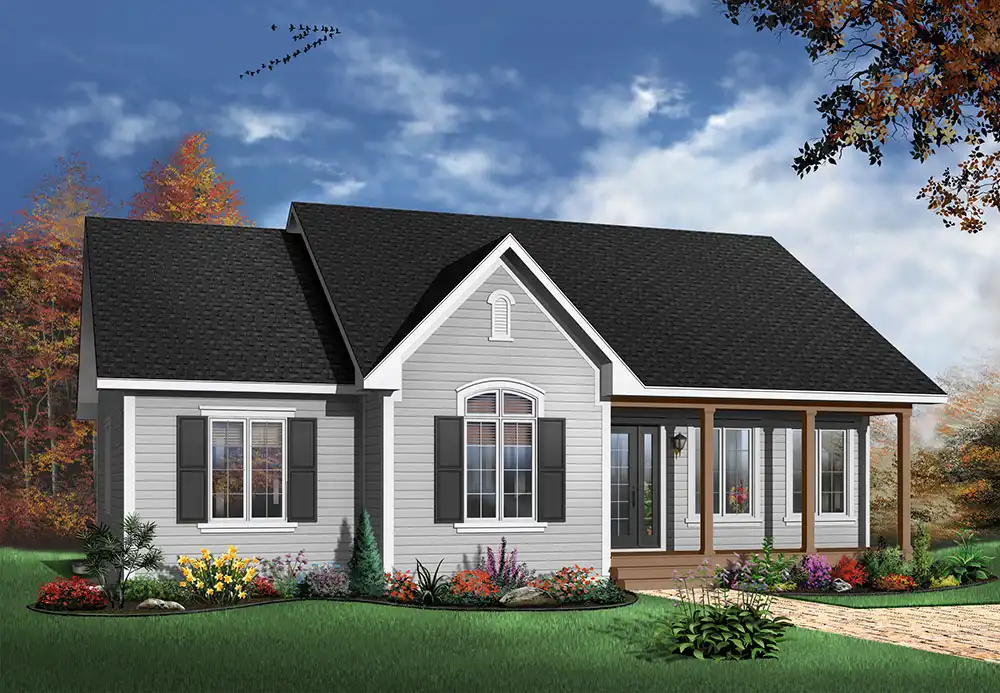 A covered porch graces the entry of this tidy bungalow. Step inside and a closed foyer with closet contains elements and provides a weather lock. The forward-facing, vaulted living room shares a two-sided fireplace with the dining area and kitchen with island. A back door makes it easy to step out for a breath of fresh air or backyard leisure. The master bedroom enjoys a generous walk-in closet and shares a 5-fixture bathroom with two additional bedrooms. Virtually double useable space by developing the basement.