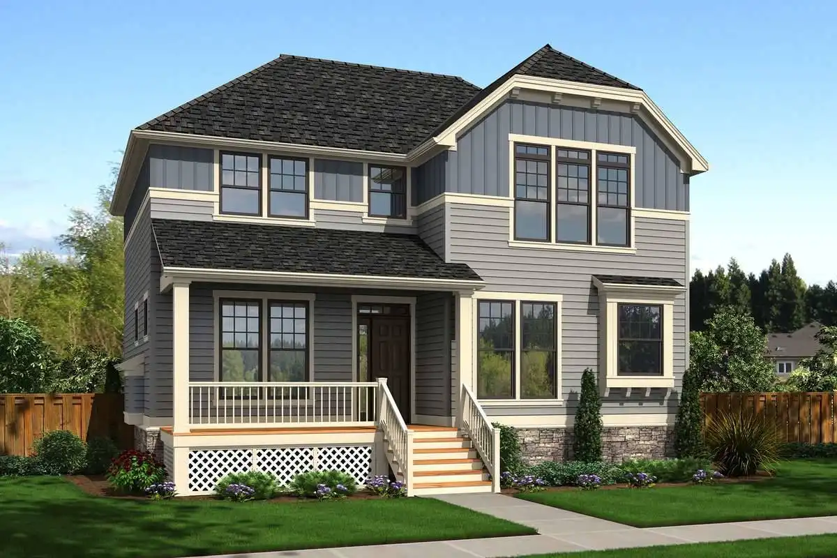 Like the work of a master craftsman, this charming 2-story plan has attention paid to even the finest of details. An exceedingly attractive curb appeal features large windows, a gabled roofline, and even a covered front porch to relax on. Inside, 2,043 square feet of living space provides privacy and comfort, in the form of 3 bedrooms, 3.1 bathrooms, and tons of other great spaces. The master even has a large walk-in closet near its en-suite! Downstairs you'll enjoy everything from the privacy of the study to the functionality of the island kitchen. And notice how the open concept layout joins all of these spaces, plus the dining room and great room, together perfectly.