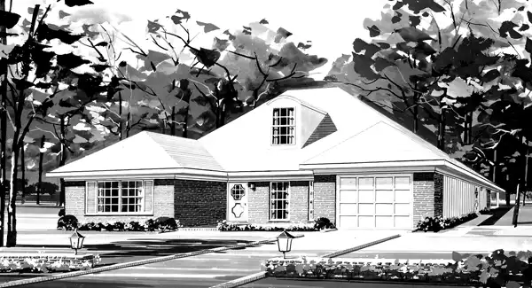 This affordable traditional three-bedroom ranch can expand up to five bedrooms. It features a narrower footprint, which allows it to fit a smaller lot. The floor plan is open, allowing enhanced views throughout. The eat-in kitchen is visually connected to the adjoining dining room and family room. A large covered porch enhances this informal area. The master includes a private bath and walk-in closet. The bonus space on the second floor is designed to provide two additional bedrooms and a full bath.