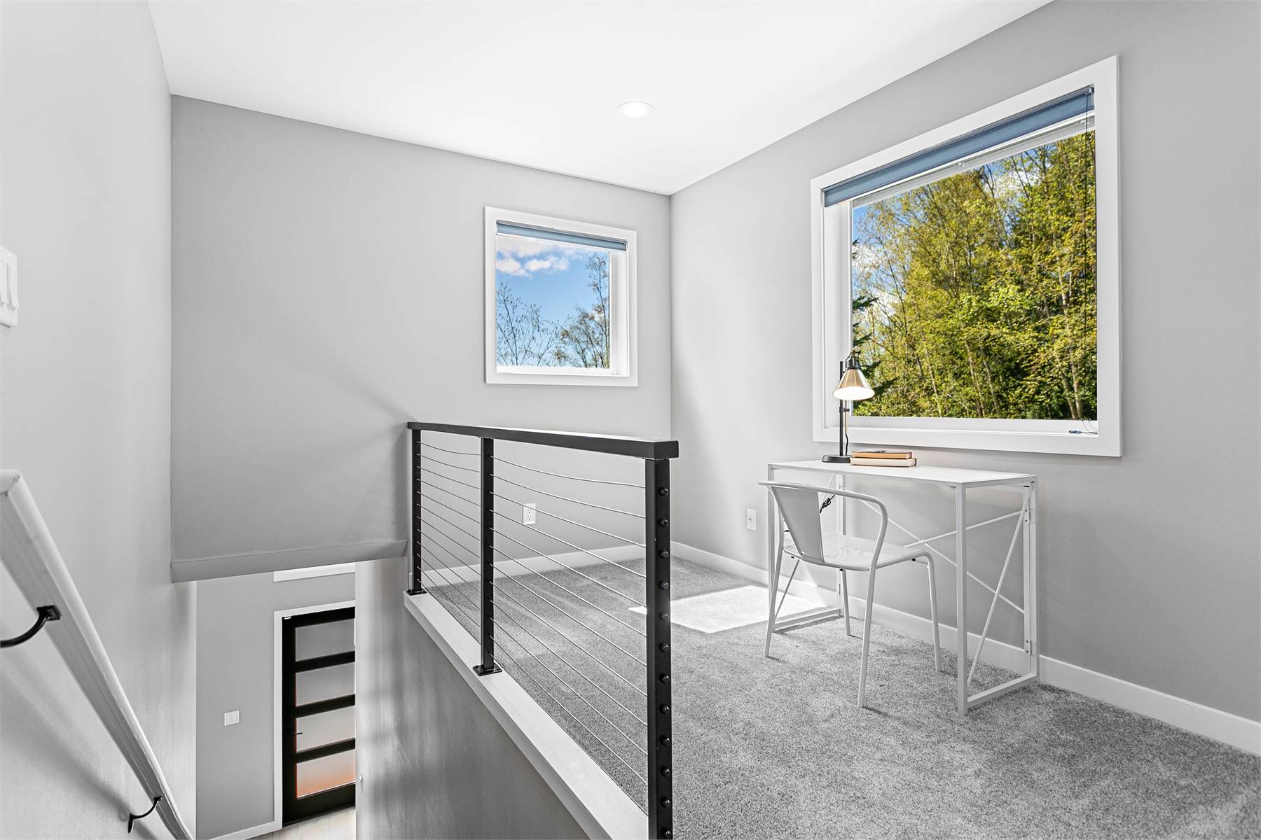 This gorgeous design would be a great choice for those looking to build a new home with modern amenities. The exterior of this contemporary style house plan is designed to impress with large windows that let in plenty of natural light. The inside features an open floor plan with a great room and dining area that is perfect for entertaining guests. The main floor includes office space, a separate laundry room, and a master bedroom with a large walk-in closet. The lower floor includes two additional bedrooms and an open family room area, and access to the 3 car garage. Enjoy eating outside on the deck conveniently located off the dining area. This house plan is a great choice for the contemporary-style home buyer and would work well in a range of locations and settings.
