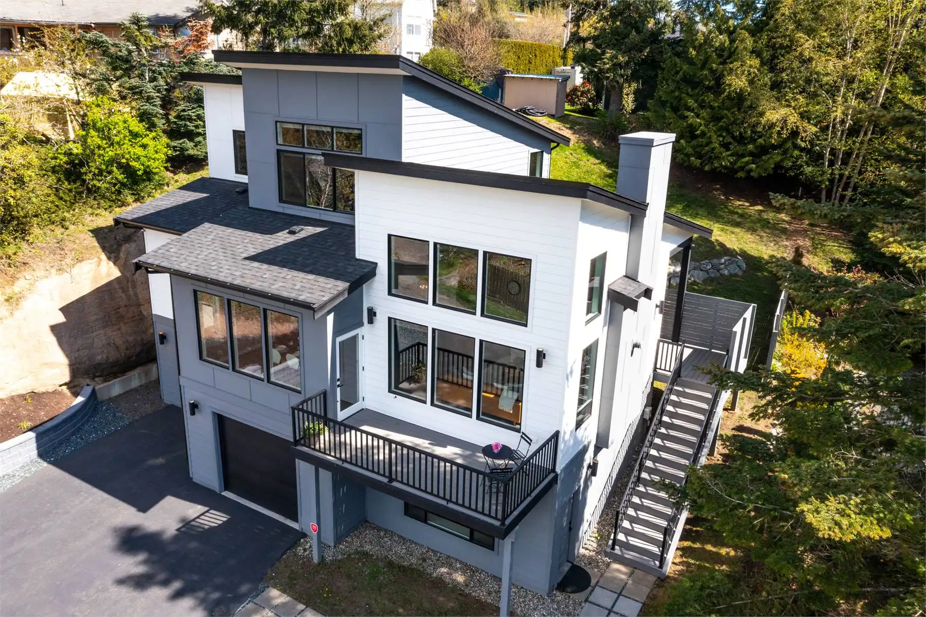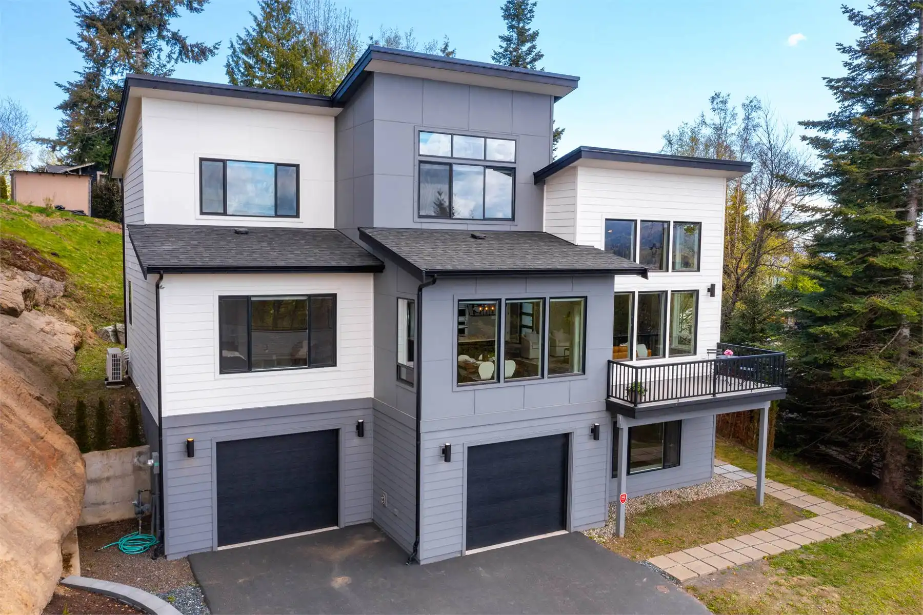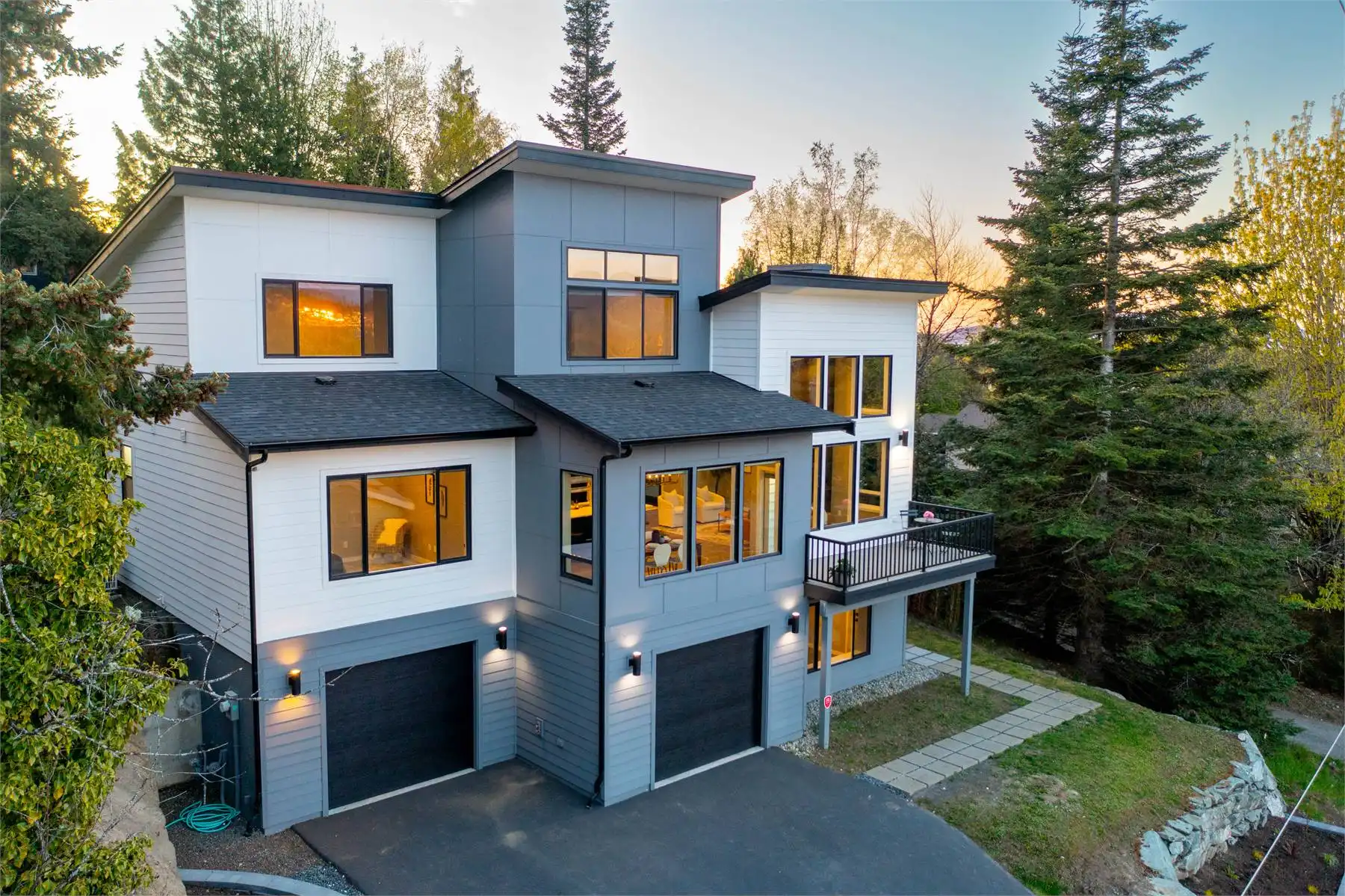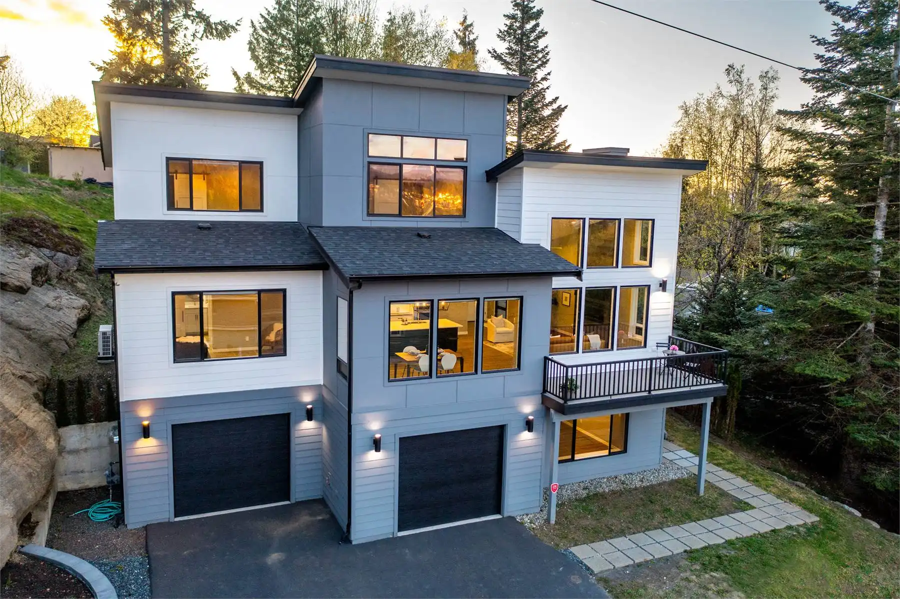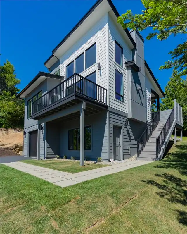 This gorgeous design would be a great choice for those looking to build a new home with modern amenities. The exterior of this contemporary style house plan is designed to impress with large windows that let in plenty of natural light. The inside features an open floor plan with a great room and dining area that is perfect for entertaining guests. The main floor includes office space, a separate laundry room, and a master bedroom with a large walk-in closet. The lower floor includes two additional bedrooms and an open family room area, and access to the 3 car garage. Enjoy eating outside on the deck conveniently located off the dining area. This house plan is a great choice for the contemporary-style home buyer and would work well in a range of locations and settings.