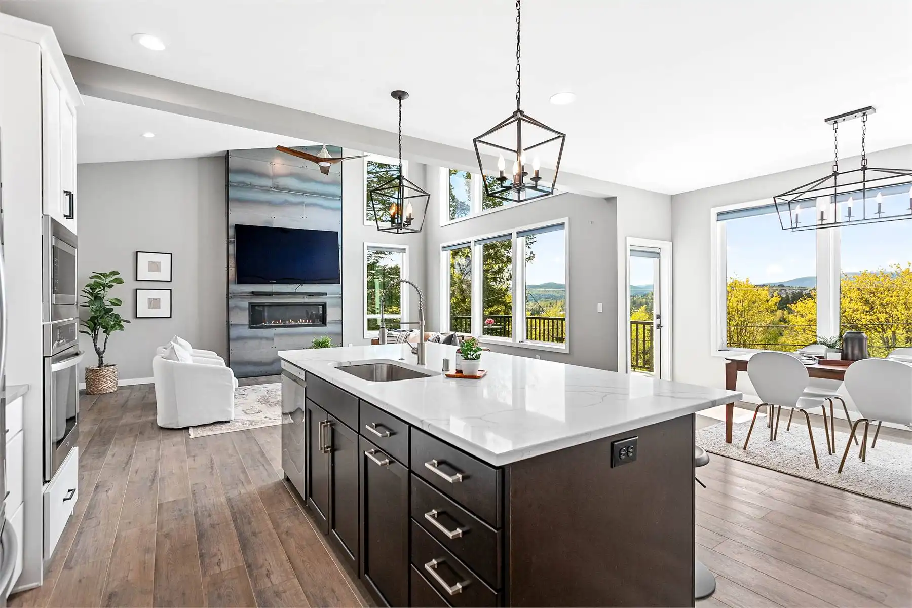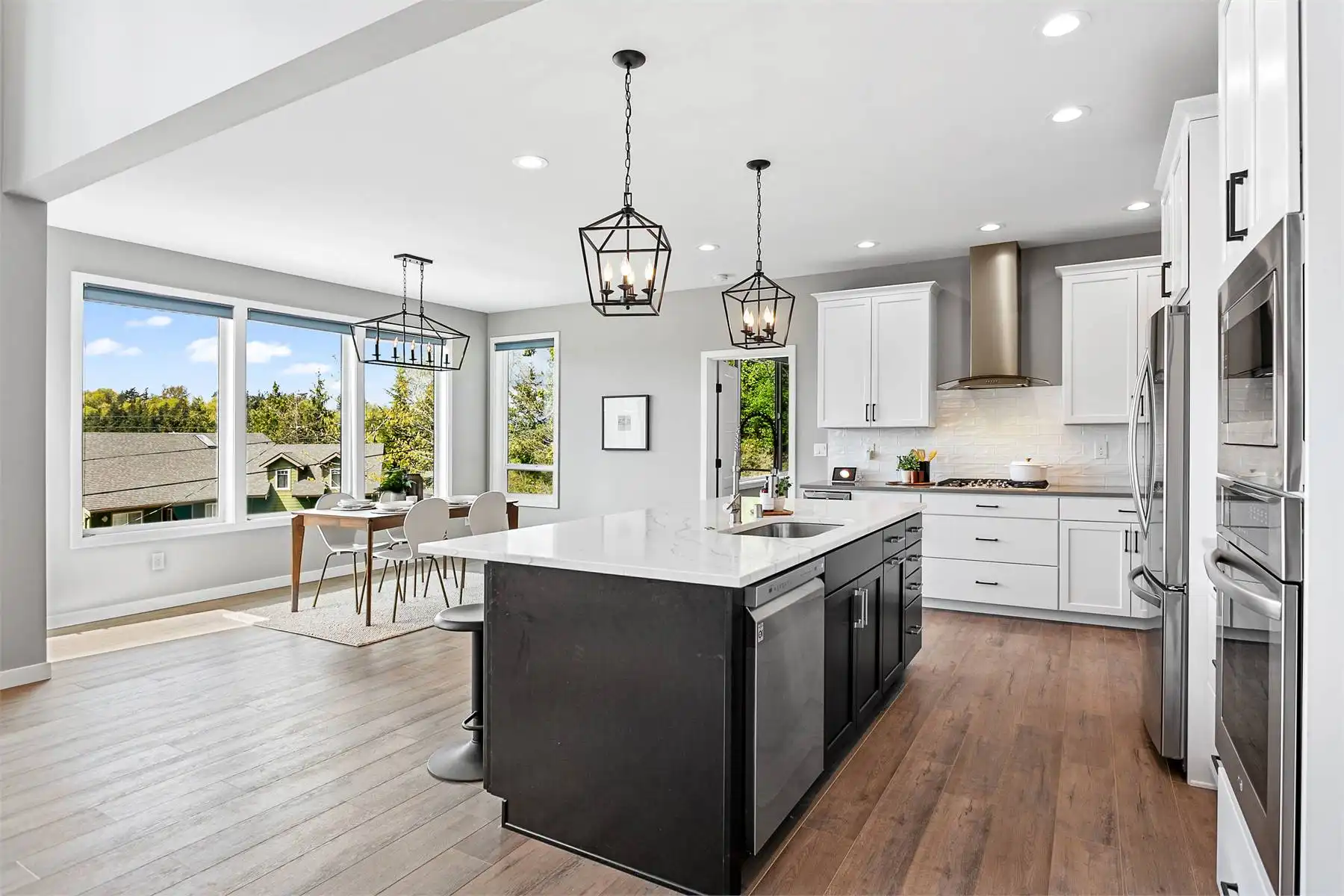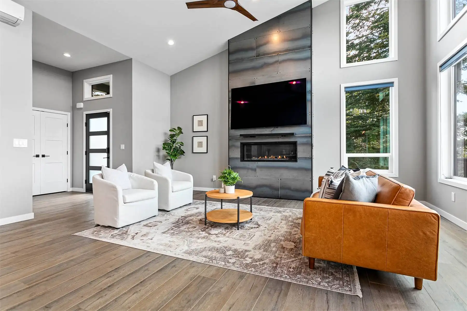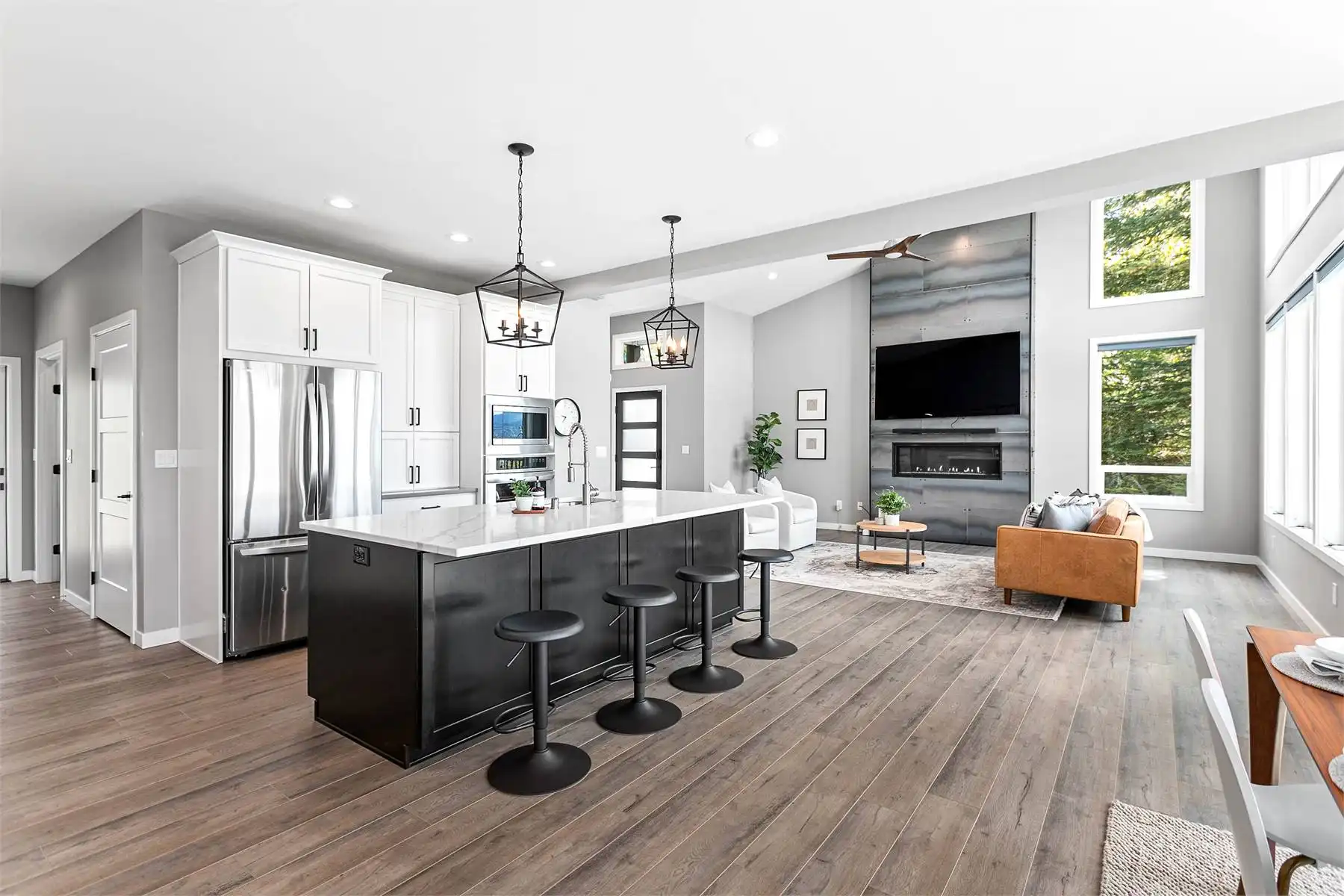 This gorgeous design would be a great choice for those looking to build a new home with modern amenities. The exterior of this contemporary style house plan is designed to impress with large windows that let in plenty of natural light. The inside features an open floor plan with a great room and dining area that is perfect for entertaining guests. The main floor includes office space, a separate laundry room, and a master bedroom with a large walk-in closet. The lower floor includes two additional bedrooms and an open family room area, and access to the 3 car garage. Enjoy eating outside on the deck conveniently located off the dining area. This house plan is a great choice for the contemporary-style home buyer and would work well in a range of locations and settings.