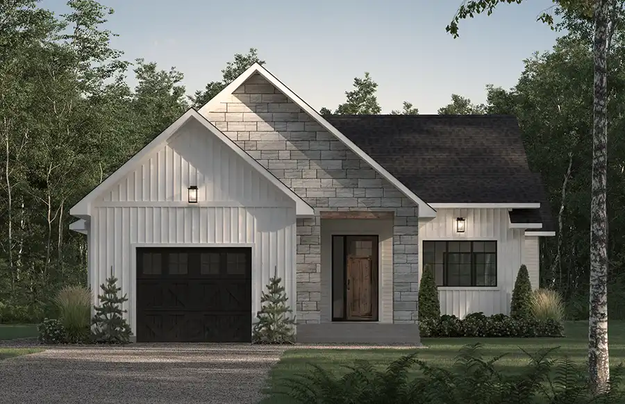 House Plan 4241 is a lovely cottage with 2,758 square feet, four bedrooms, and two bathrooms in an inverted layout. The main level includes the foyer, open-concept living with an island kitchen and vaulted great room, two bedrooms including the primary, and a five-piece hall bath. Downstairs, you'll find the other two bedrooms, a hall bathroom, the family room, the office, and the laundry room. This home is smartly designed with a laundry chute from the main level bath down to the laundry room, a large storage room in the lower level, and covered outdoor living space off the main level. Just imagine the possibilities here!