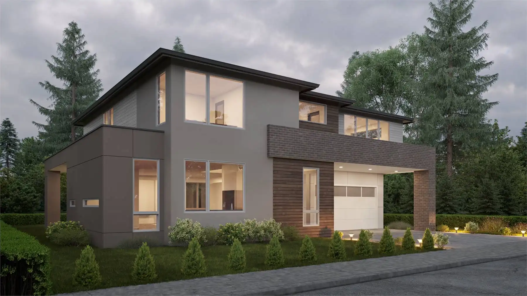 With a modern exterior and semi-traditional interior layout, House Plan 4248 strikes the perfect balance for families looking for something chic yet convenient. It offers 3,159 square feet across two stories to keep to relatively modest dimensions, too! Step inside and the foyer will welcome you in before you hit the great room. The spacious kitchen is placed in front, followed by the open dining space and the living area in back, complete with a fireplace. There's also a den and a powder room in the back corner behind the garage. Turn it into an office or a contained playroom for the kids--the choice is yours! Upstairs, all four bedrooms wrap around the central loft and the five-piece master suite with its own weather deck takes up one full side for privacy. The other bedrooms include a smaller suite and two more that share a hall bath. The laundry room is also up here to simplify doing the chores. House Plan 4248 wonderfully defines living and sleeping quarters while still delivering sharp contemporary style, so consider it if this is what you want!