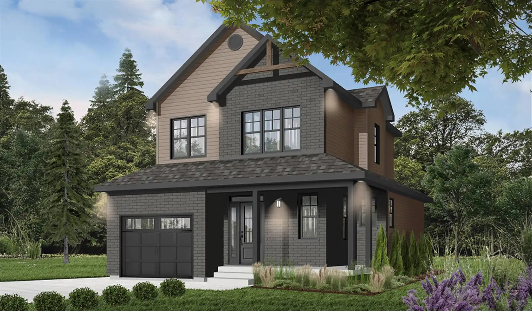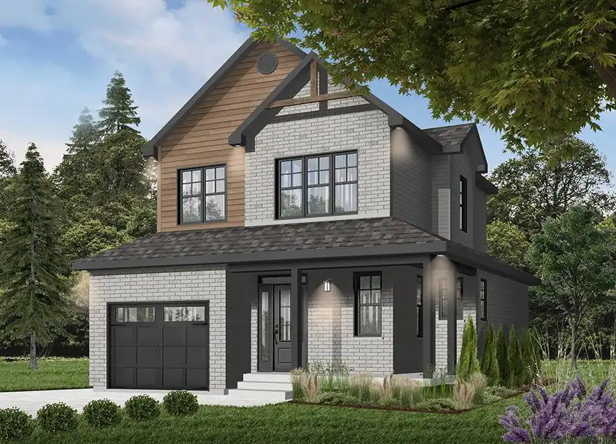 House Plan 4261 makes a wonderful choice for a family on a budget! This two-story transitional home offers a modest 1,346-square-foot layout with three bedrooms and one-and-a-half bathrooms in addition to a front-entry one-car garage. On the main floor, you'll find the powder room and laundry off the foyer while the island kitchen and great room fill out the back. Upstairs, the bedrooms are placed around a central four-piece hall bath for convenient access.