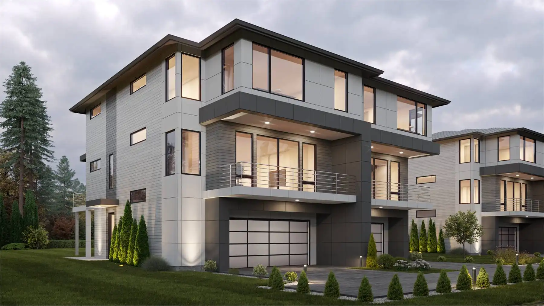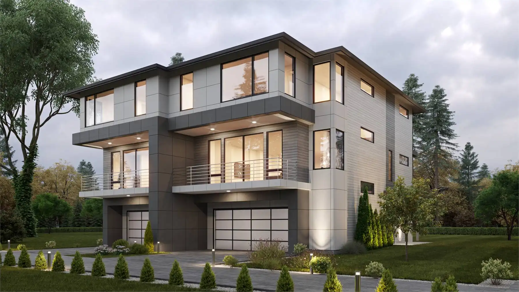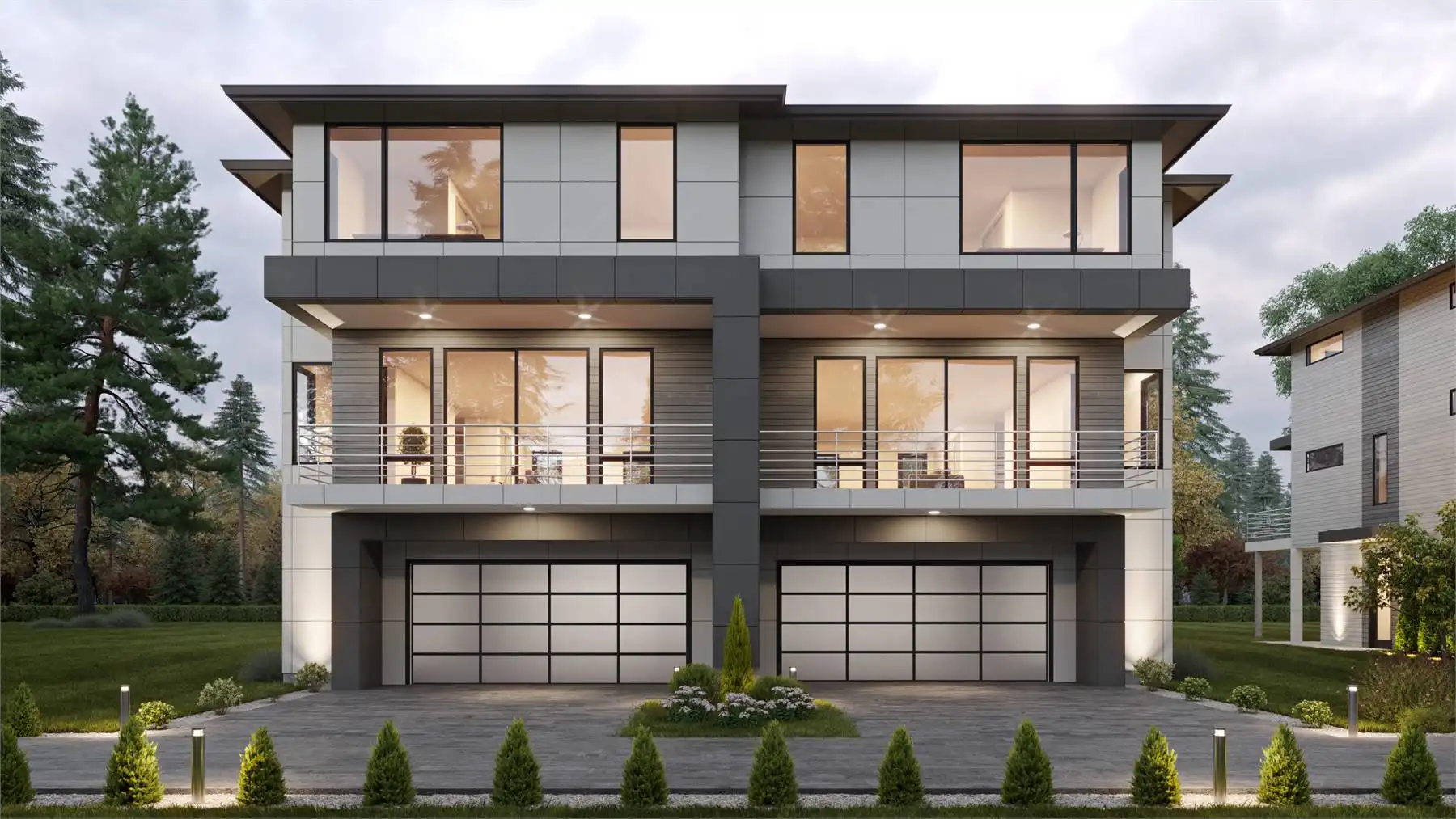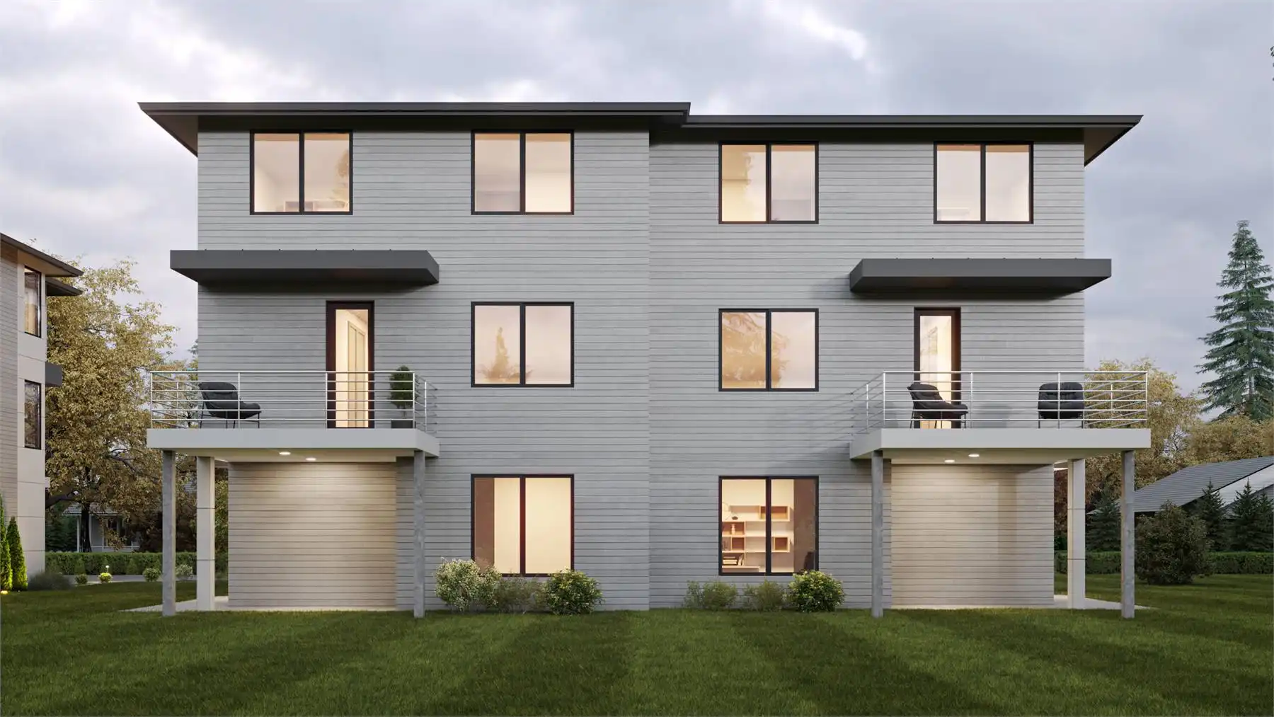 House Plan 4274 is a wonderful duplex design that doesn't skimp! Each unit has 2,573 square feet, and because they're spread across three levels, the entire structure has a smaller footprint and will be more affordable to build than others of this size. A two-car garage makes up most of the ground level, but there's also a full bedroom suite and an entry foyer. Head upstairs and you'll find a completely open great room perfect for hosting! There's also a powder room and decks in front and back to broaden the possibilities. Three more bedrooms round out the top floor, including a large master suite and two secondary bedrooms that share a hall bath. The laundry is also placed up here for convenience. If you're looking for a striking modern duplex with enough room for the whole family, give House Plan 4274 your consideration!
