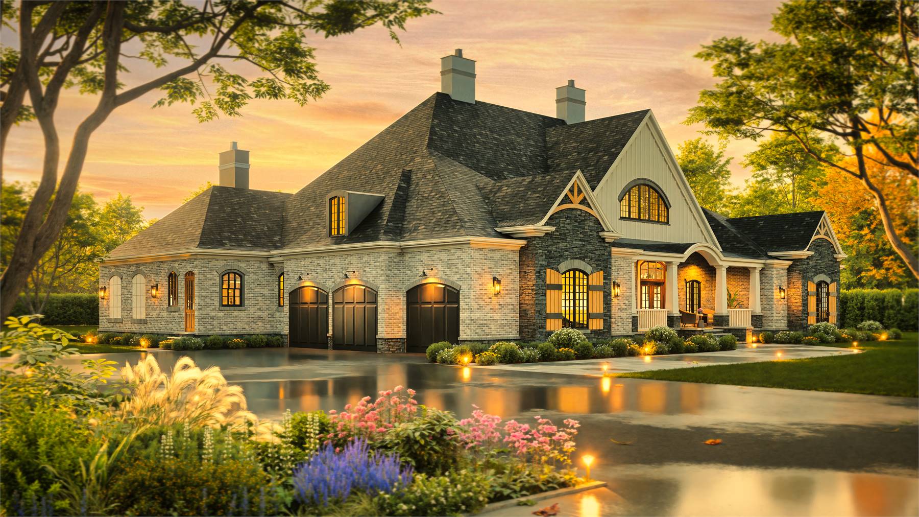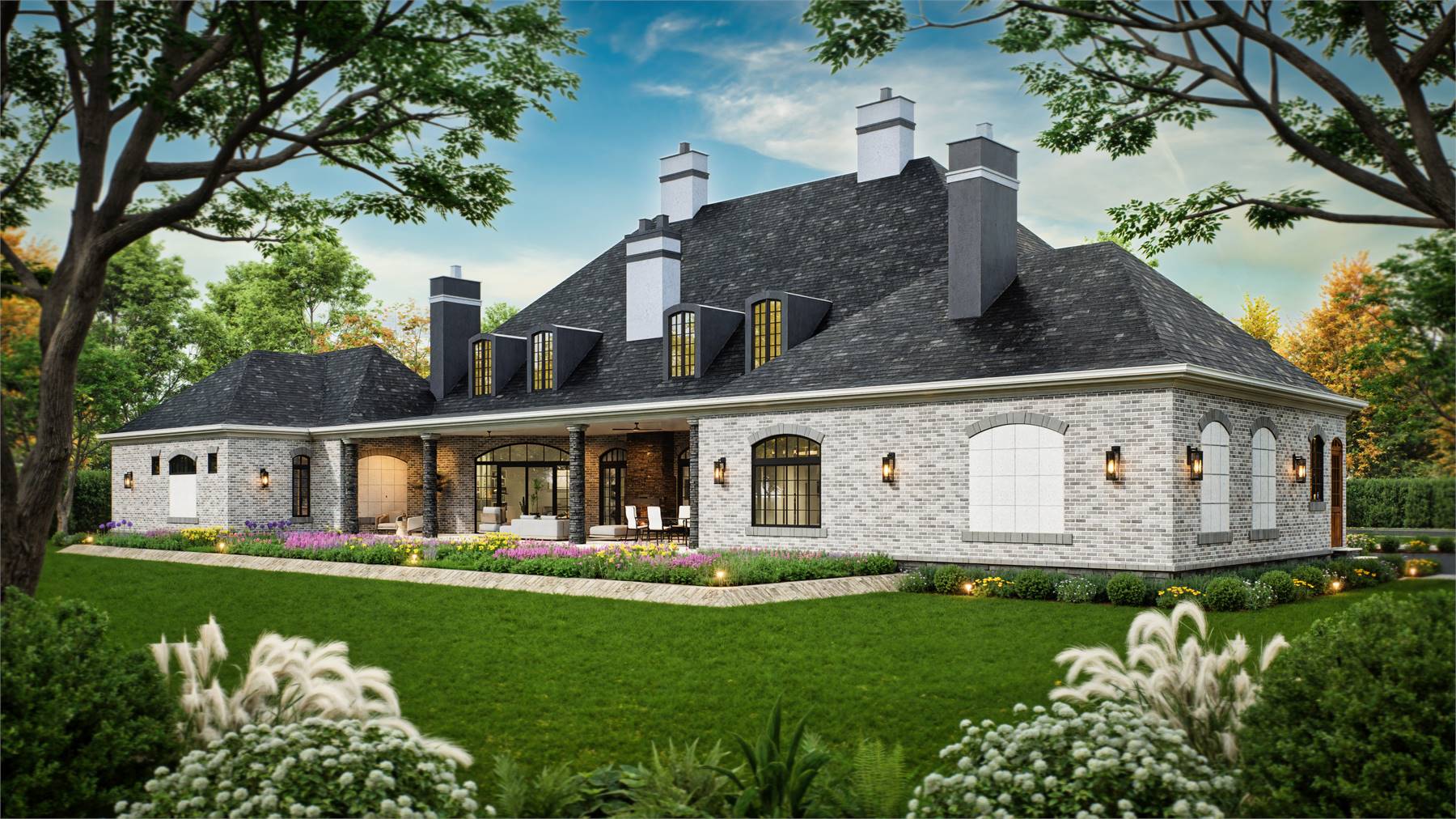 This elegant two-story French Country home blends timeless charm with luxurious amenities. The stucco and stone exterior is enhanced by a striking central gable and dual front porches that create a warm and welcoming entryway. Step inside to find spacious, beautifully appointed rooms designed for both comfort and sophistication. The primary suite is a private retreat, complete with built-in dressers, his and hers walk-in closets, a romantic fireplace, and even a bar. The adjoining bath showcases an opulent soaking tub and walk-through shower, with a private gym completing this indulgent space. Entertaining is effortless thanks to the centrally located wine bar connecting the grand room, kitchen, and breakfast area—perfect for gatherings or movie nights in the home theatre. Upstairs, two generous bonus rooms provide flexible space for family living, hobbies, or guests. Outdoor living shines with a covered veranda featuring a cozy fireplace, making this home an entertainer’s dream both inside and out.