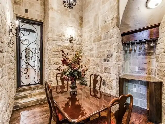 built-ins. Adjacent to the foyer is a wine room that leads to the pantry and gourmet kitchen. Twelve-foot
