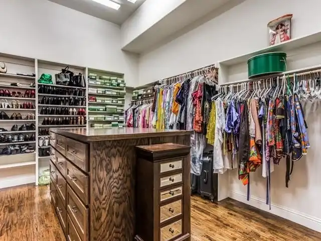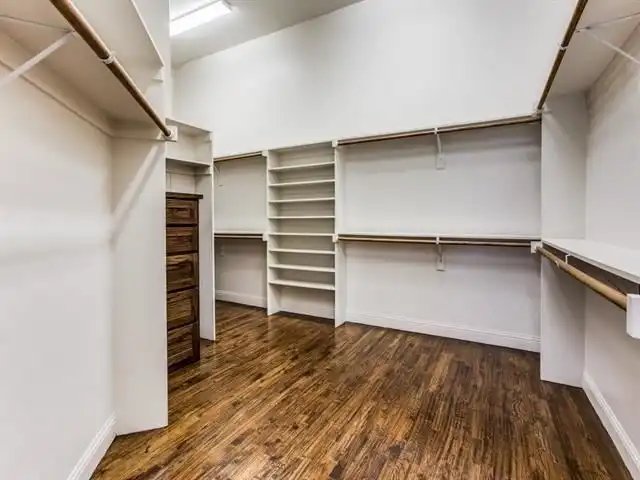 and marble. There is also a separate glass shower and two large wardrobes with built-ins. The right wing of