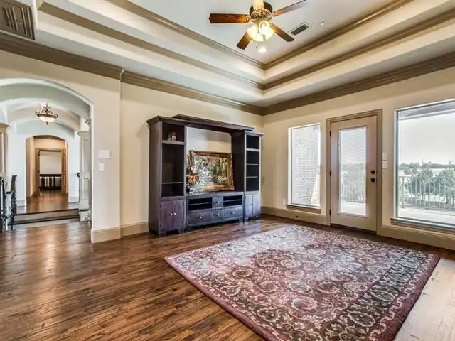 sixth bedroom, which also has a walk-in closet. A large game room with outdoor access to the upper covered