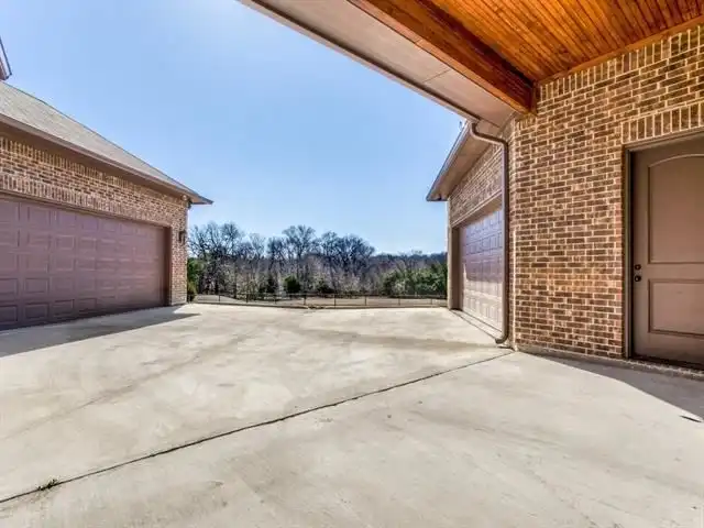 vaulted ceiling. There are two, two-car garages with work space and from the front garage, a portico that leads