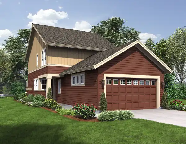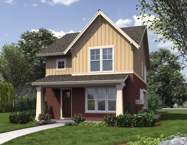 At only 25 ft. wide, the Florette has a great layout with a compact footprint. A front porch leads through the foyer to a cozy great room with a good size open kitchen and dining area. A walk-in pantry and office are rare amenities in such a narrow home this plan has it all! Upstairs, a vaulted master bedroom offers a fantastic retreat, while two additional bedrooms leave room for growing families.