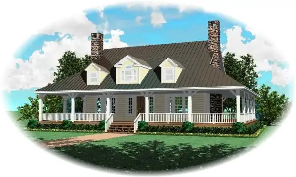 With the full wrap around porch, this plan offers outdoor views of all sides. Vaulted Ceilings with decorative beams bring character to this country living design. Of course, who wouldn't love this huge mudroom?