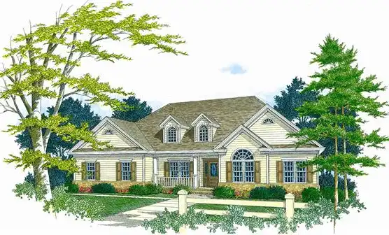 The country porch adds character while special exterior details such as arch top windows and dormers, along with multiple gable roof lines add flair.