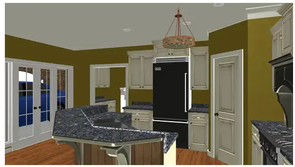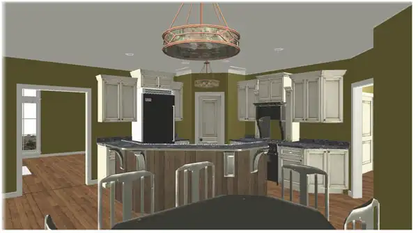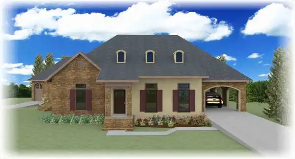 With the popularity of the Internet, a lot of homeowners have chosen to work out of their homes. This design allows that with ease and safety. Clients will never have to walk through your home again, since this area has a separate rear entrance. This area would also be perfect for a "boomerang" child or an elderly parent. The area has privacy, two closets and a handicapped bath. A large open kitchen/dining area is perfect for entertaining.