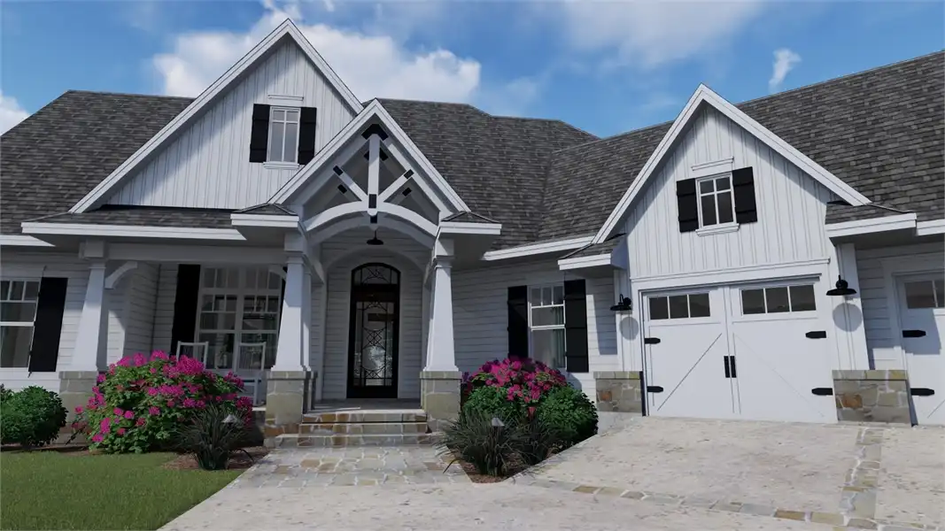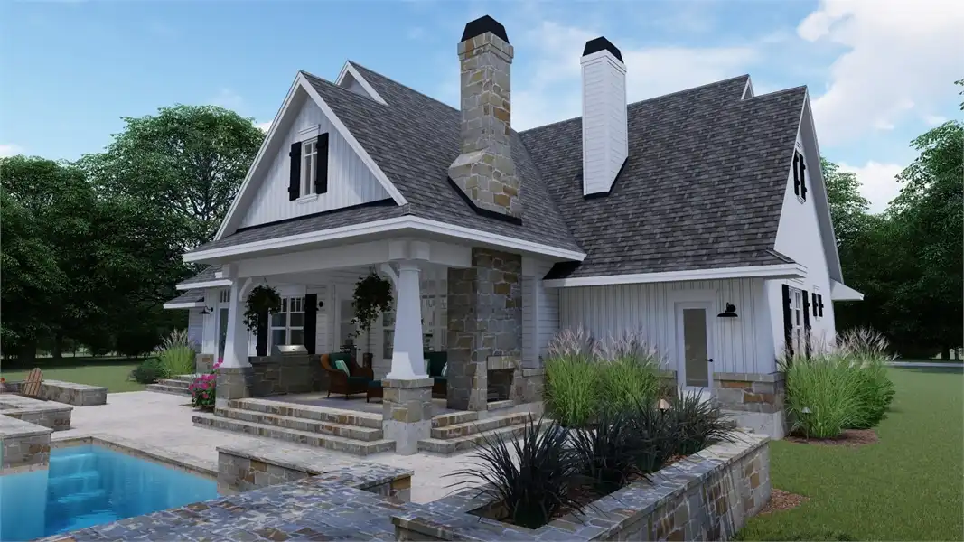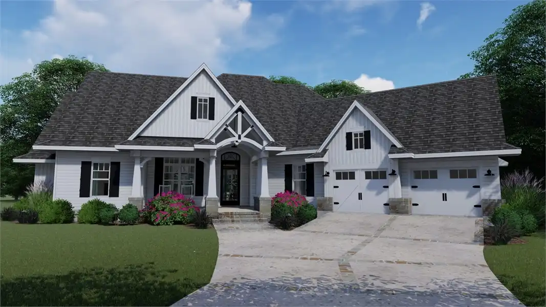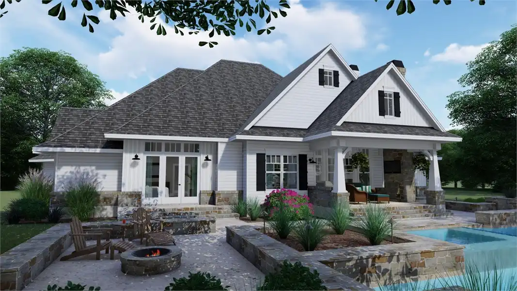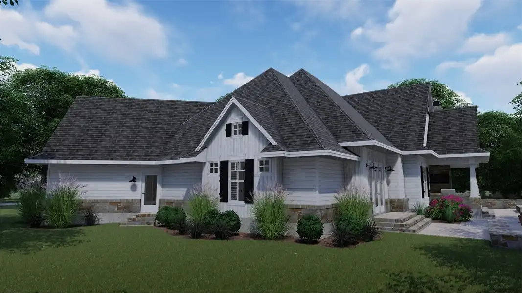 A nostalgic front porch welcomes visitors to this one-story country house plan, complete with three bedrooms, 2.5 baths and 2,504 square feet of living area. Wide-open spaces in this home plan will impress you, as the gourmet kitchen flows into the spacious great room with fireplace. A 12-ft. ceiling visually expands the area. A second fireplace enhances the fantastic lanai, along with a useful summer kitchen. Meals may be served quite tastefully in the dining room or the casual nook. His-and-hers walk-in closets are found in the posh master suite. The personal bath showcases a garden tub, a separate shower and two vanities. A Jack and Jill bath lies between the children's bedrooms, and each bedroom boasts a walk-in closet. Our customers love the quiet study in this home design, as well as the handy shop area in the two-car garage. Follow the ornamental railing up to a versatile bonus suite, which would make a nice art studio.