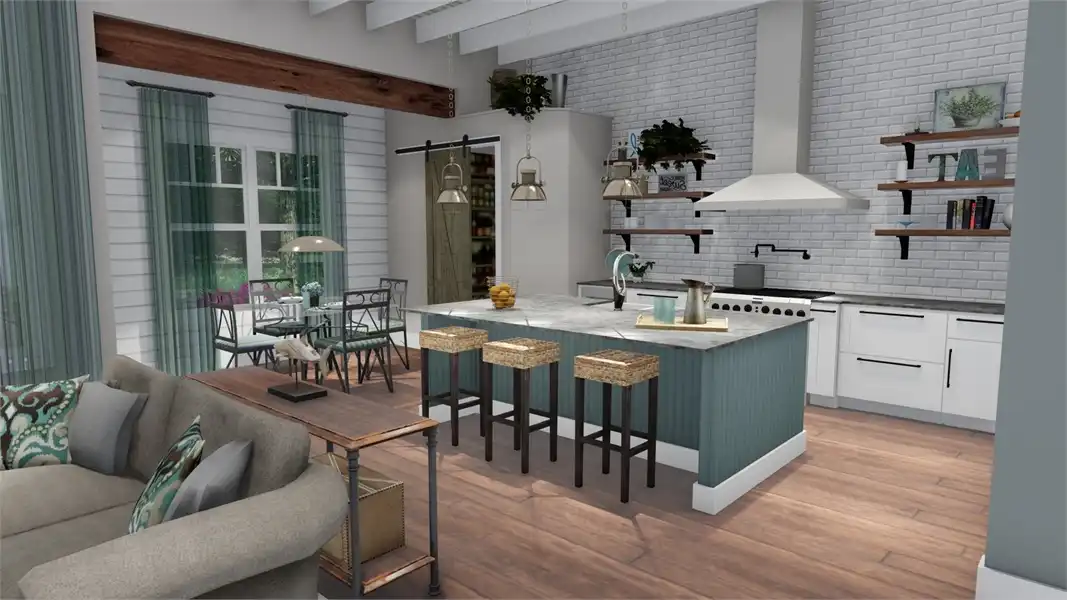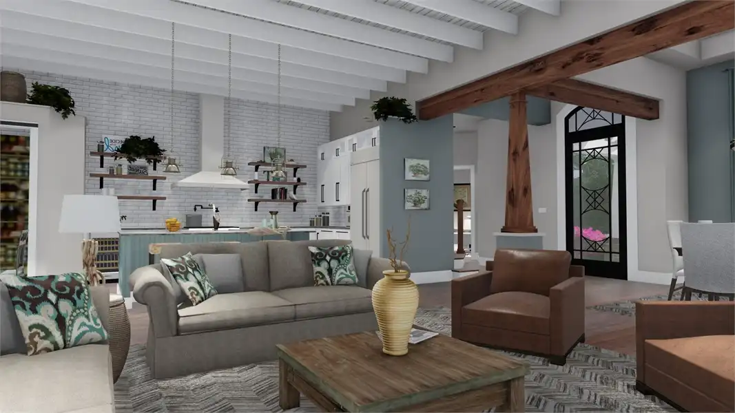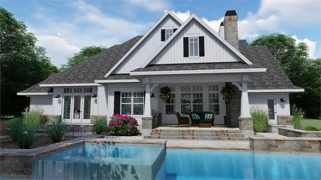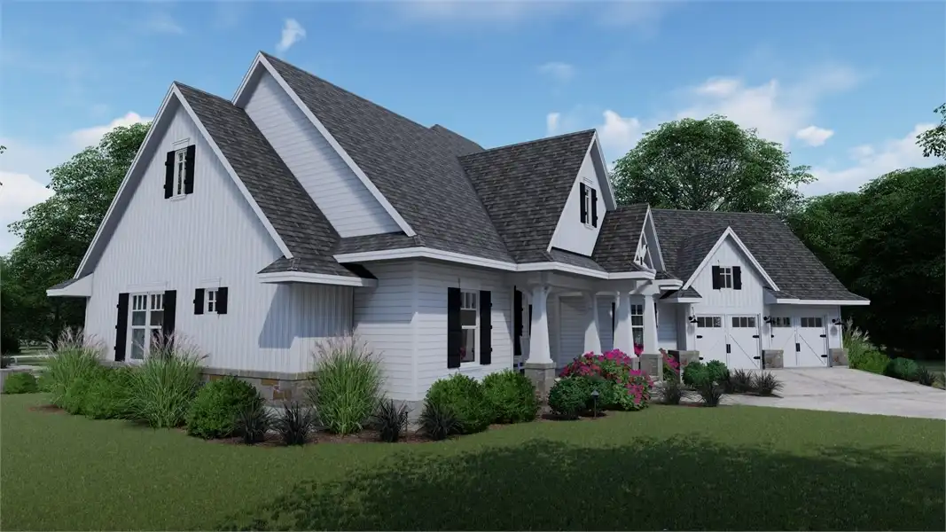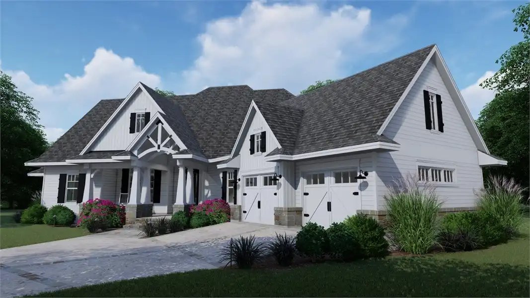 A nostalgic front porch welcomes visitors to this one-story country house plan, complete with three bedrooms, 2.5 baths and 2,504 square feet of living area. Wide-open spaces in this home plan will impress you, as the gourmet kitchen flows into the spacious great room with fireplace. A 12-ft. ceiling visually expands the area. A second fireplace enhances the fantastic lanai, along with a useful summer kitchen. Meals may be served quite tastefully in the dining room or the casual nook. His-and-hers walk-in closets are found in the posh master suite. The personal bath showcases a garden tub, a separate shower and two vanities. A Jack and Jill bath lies between the children's bedrooms, and each bedroom boasts a walk-in closet. Our customers love the quiet study in this home design, as well as the handy shop area in the two-car garage. Follow the ornamental railing up to a versatile bonus suite, which would make a nice art studio.