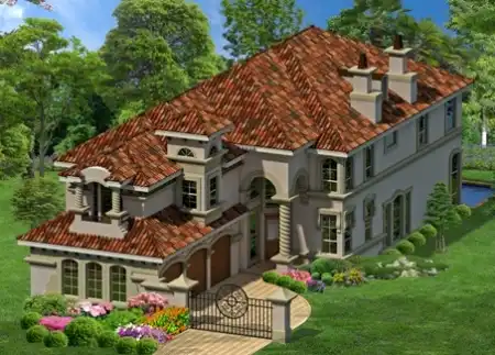 This home's striking curb appeal will draw compliments from guests and passersby. Inside, you can welcome visitors in the foyer and invite them to relax in the living room before dinner. Enjoy a feast in the lovely dining room, which shares a fireplace with the quiet study. The family chef will make good use of the large pantry near the island kitchen. A corner fireplace warms the sizable family room. All the sleeping areas are located upstairs, so you can keep the main floor tidy for unexpected company. The master suite has it all: a juice bar, a balcony, a whirlpool tub, a separate shower, a cedar closet and a vast wardrobe. Two more bedroom suites, one of which is perfect for guests, round out the design.