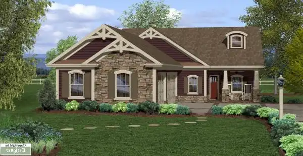 This inviting ranch is designed for narrow lots. We've included our most requested features and even added a few of our own "signature touches." Just a couple of rounded corners add flair as they direct the flow from the entry to the indoor & outdoor living areas. We've also provided access to the outdoor living area from the master suite and the breakfast area.