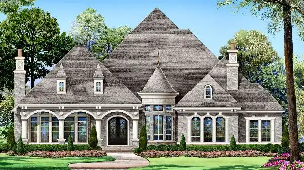 You'll be proud to call this elegant home design your own. A lovely porch gives way to a sizable foyer and a circle-shaped family room with a fireplace. A piano nook allows you to have the family musician play soft music during dinner. The island kitchen is a cook's dream, with endless amenities. The breakfast nook is warmed by a corner fireplace. A side patio is just steps away. Straight back, a fun game room leads to three bedrooms and two baths. Bedroom 3 would make a perfect guest room. The three-car garage loads from the back alley, keeping the front of the home uncluttered. Last but not least, the posh master suite is a peaceful retreat after a long day.