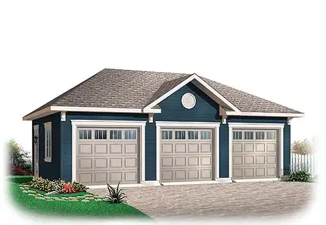 This attractive and spacious garage plan accommodates three cars with ease. The traditional exterior will complement any house. An extra door on the rear of the garage allows the middle car the convenience of driving straight through rather than backing up.