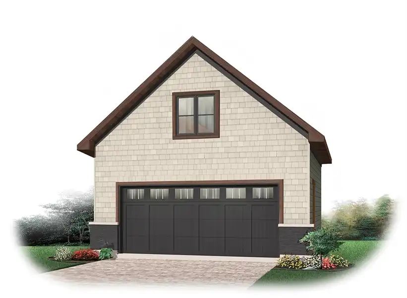 This 953 square foot garage plan is as versatile as it is appealing. Quaint Craftsman features such as brick and shutters, give this plan the appeal and ability to fit with a wide range of home designs, including: Craftsman, European, traditional, and even country. Offering two large windows, this 2-story garage has plenty of natural light. Space for two cars and plenty of storage is found on the first level, while an open 600 square foot bonus space is located on the second floor. This area is a great option for a workshop or hobby shop, or even additional storage to help free up space in your home. With this great plan, the options are limitless.
