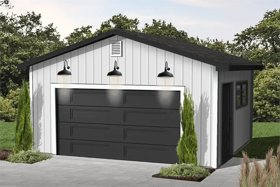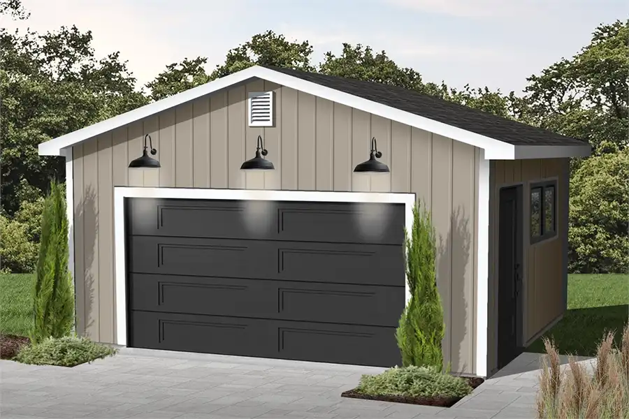This garage addition plan pairs perfectly with virtually any of our cottage, beach, or ranch style plans. Offering 384 square feet, this garage has enough space for an additional enclosed parking space for your home. If parking isn’t an issue, consider adding this stylish option as a private workshop or studio space. Or if your home is overflowing with various items and storage is at a premium, this plan is a great and accessible option to help alleviate the stress on your living space. And with such a small footprint, this plan can be built almost anywhere, adding instant value and appeal, as well as increased function, to any home.
