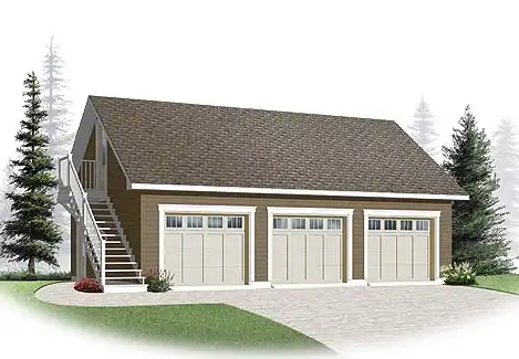 This good-sized garage plan boasts three bays for cars. An outside stairway leads up to a versatile bonus room. You decide how to use the space. Storage? Playroom? Art studio?