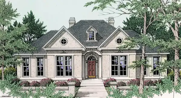 This popular floor plan is introduced by an exciting exterior. Each bedroom was given a separate entrance for privacy. Many closets, shelves and built-ins are included throughout the design for added storage space.