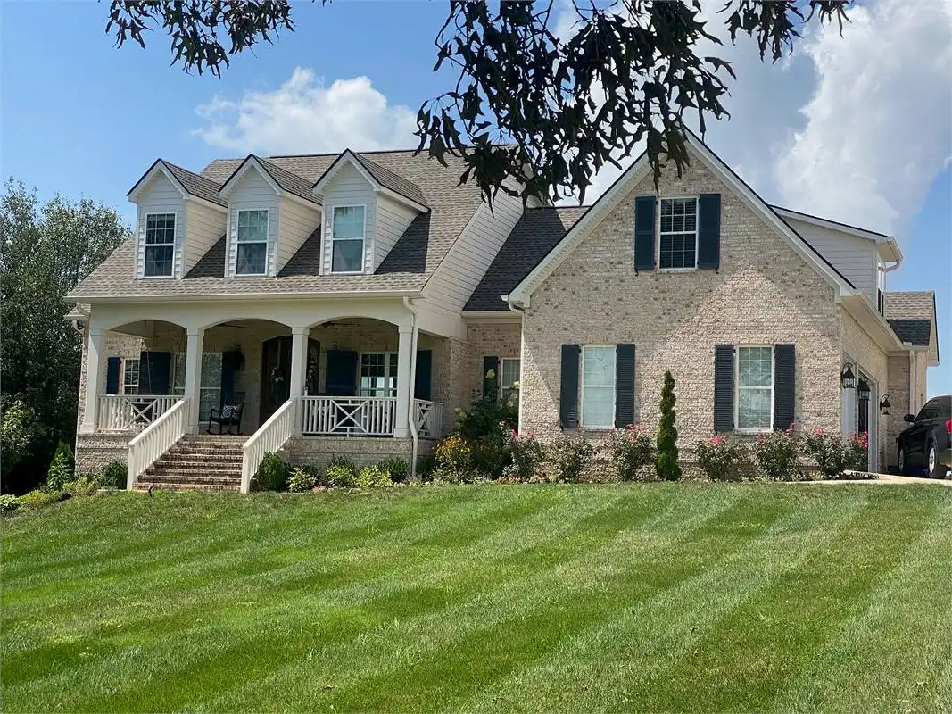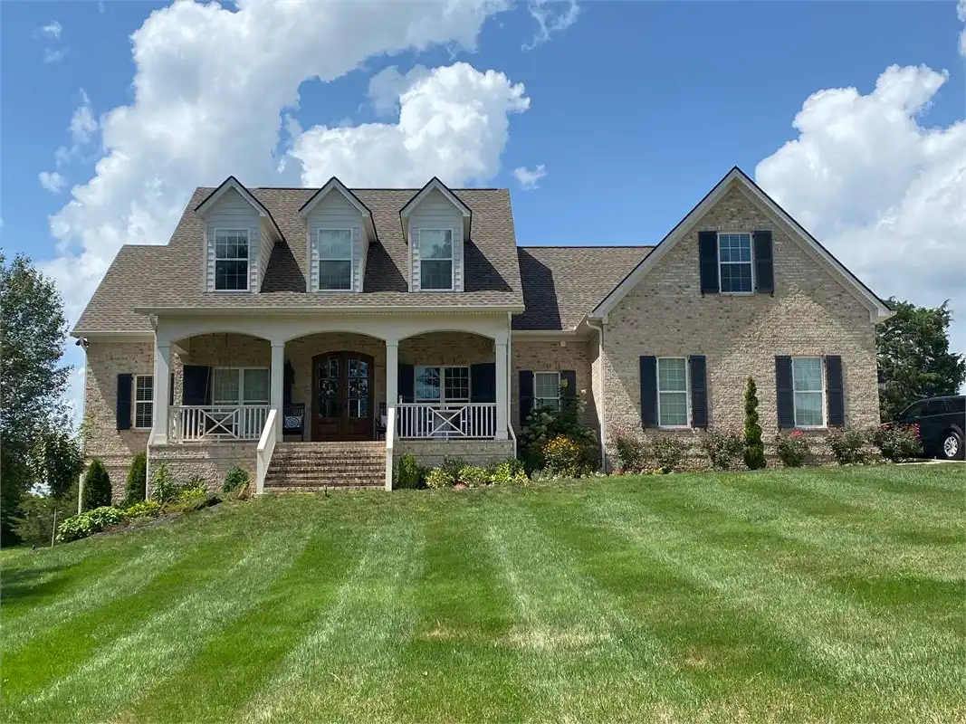 A bold brick exterior with wrought-iron accents makes this home low maintenance. A snack bar flanked by columns, opens the kitchen to the great room. Tall ceilings enhance the spacious feeling of this home. In the upper level family and friends will enjoy the media room and the warm fireplace.
