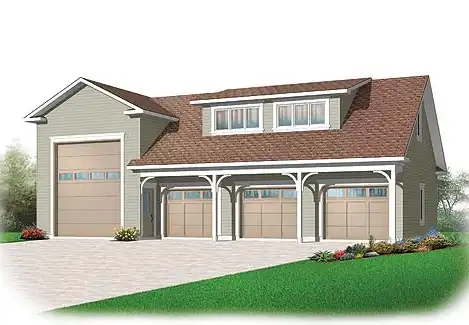 If you have three cars and an RV or truck, this may be the perfect garage for you! The spacious upper floor is brightened by shed dormers and would make a great storage room, office or playroom.